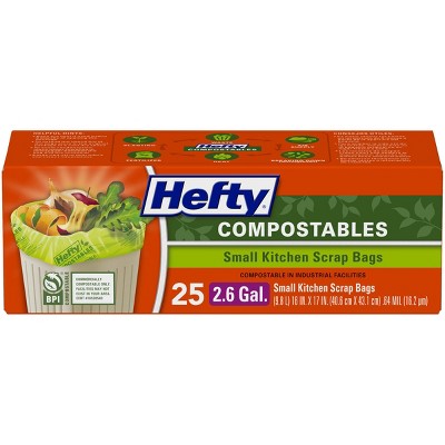 Find many great new & used options and get the best deals for hefty 00e52000 composting small kitchen scrap/trash bags 2.6 gallon, 25 count, at the best online prices at ebay! 6 gallon compostable bags from hefty. Meet the new hardworking crew! These small garbage bags are constructed of durable plastic, making them ideal for the kitchen. 4.7 out of 5 stars with 4507 ratings.
