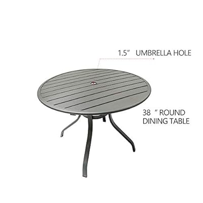 This outdoor dining table set has a simple structure and allows you to assemble it in a short time. Browse a wide selection of outdoor dining table designs in a variety of materials and finishes to complete your patio dining set. It's made with a brazilian eucalyptus. Aluminum patio bar pub dining table with umbrella hole bronze. 6 comfortable and stable armchairs give you a comfortable sitting experience, and the lightweight design can be easily moved.
