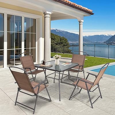 There is a hole in the middle point of the table where you can stand a patio umbrella. With the help of the umbrella hole, you can still eat with your family. The ergonomic bar height chairs with sling fabric seats and curved arms provide optimal comfort during your leisure time. In combination with outdoor table and chairs with umbrella, amid the item of furniture for just a durable garden patio : 【umbrella hole design】 this table is specially designed with two holes for fixing the umbrella.